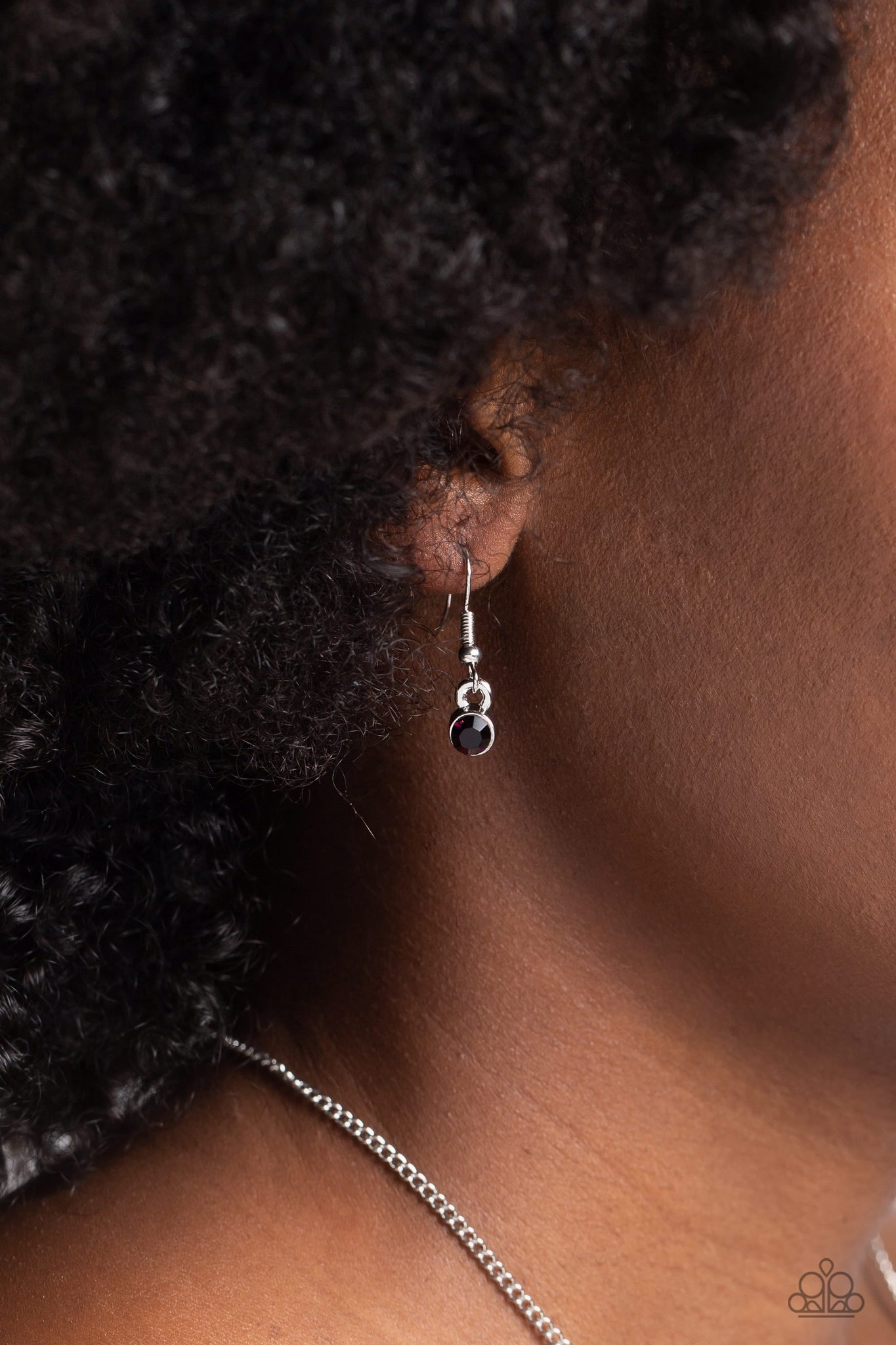 Falling from a dainty silver chain, a silver disc is embossed with rhinestones in shades of amethyst, and purple, that encircle around a dandelion stamped shape. Gliding next to the silver disc, a solitaire amethyst rhinestone set in a silver frame adds an additional pop of color to the whimsical design. Features an adjustable clasp closure. Sold as one individual necklace. Includes one pair of matching earrings.