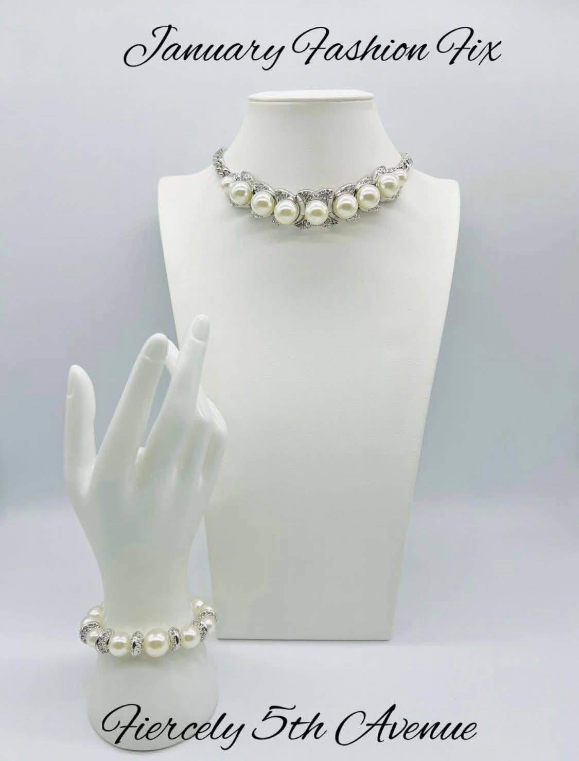 Timeless and classic yet sophisticated and versatile, the Fiercely 5th Avenue Collection features elegant designs and traditional metal finishes. Never one to shy away from a bit of sparkle, the Fiercely 5th Avenue fan is a powerhouse professional who accessorizes strategically – creating a polished look for the office that easily transitions to an elegantly glamorous after-hours style. Intended for adult use. Includes one of each accessory featured in the Fiercely 5th Avenue Complete Look in January's Fashion Fix: Necklace: "Vintage Appeal - White" (P2RE-WTXX-792NW) Bracelet: "Hypnotizing History - White" (P9RE-WTXX-724NW)